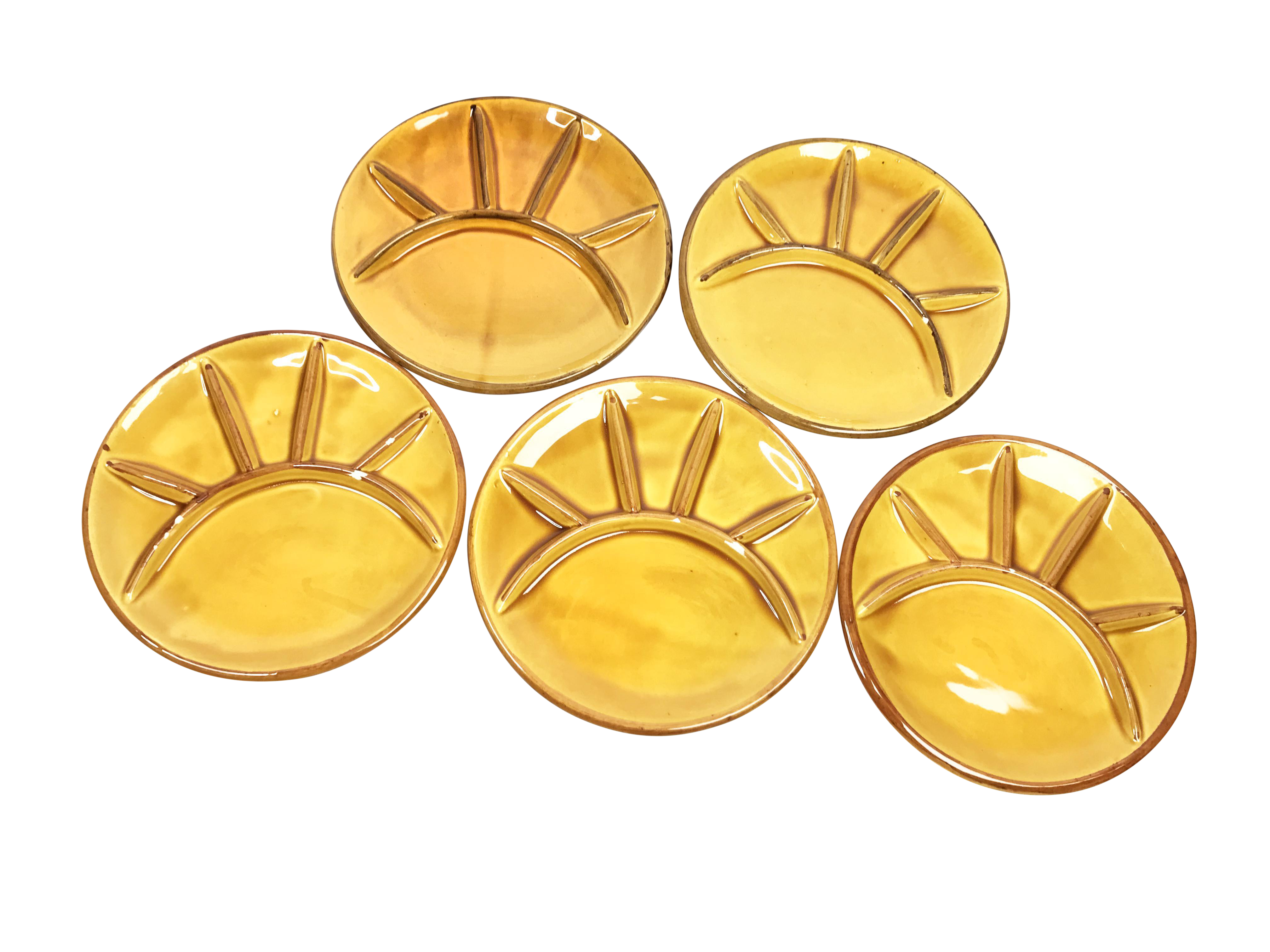 1960s French Country Yellow Ceramic Fondue Plates Set Of 5
