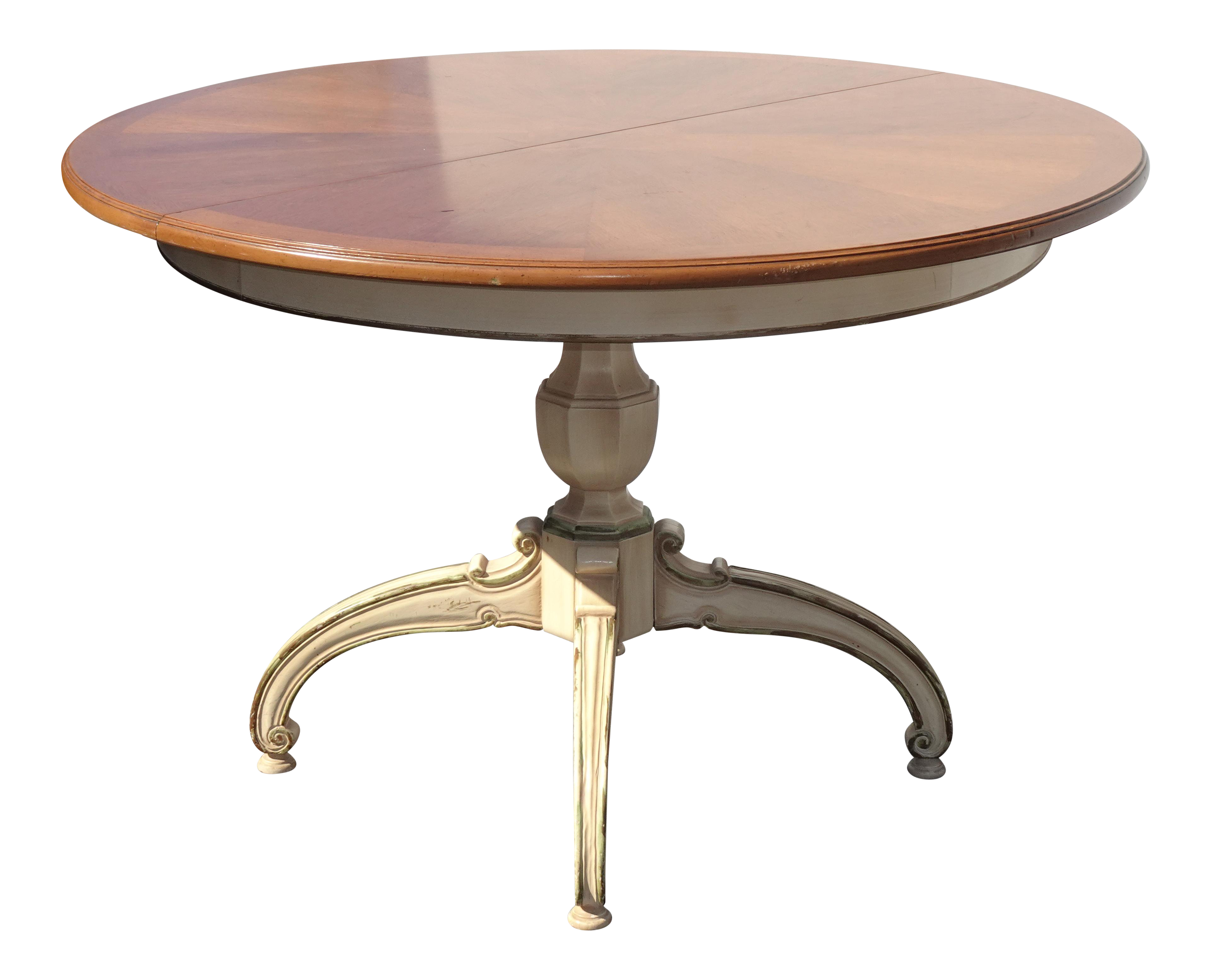 Vintage French Country Off White Pedestal Dining Table W Leaves Thomasville 1