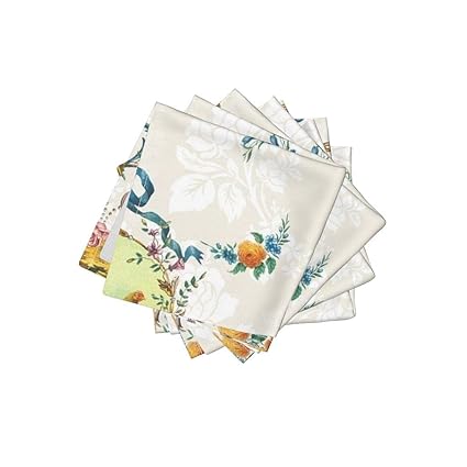 Large Cloth Napkins Set Of 4 N6079 French Country Brown Floral Modern Reusable Fabric Napkins
