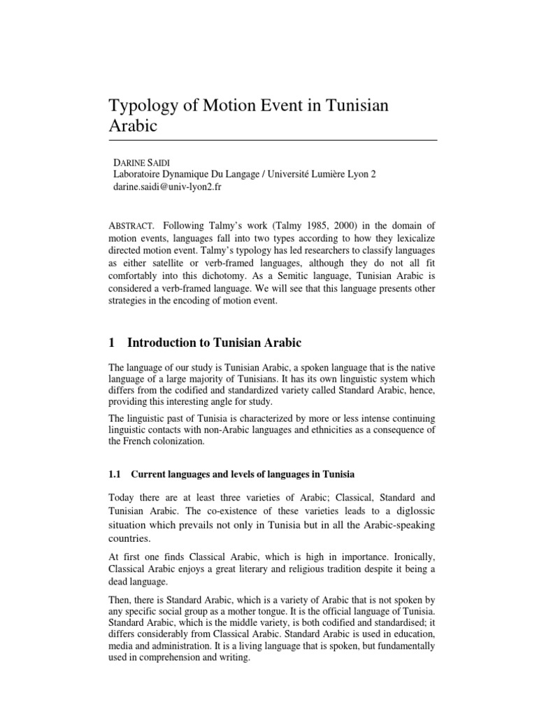 Tunisian Arabic Linguistics Arabic Linguistics