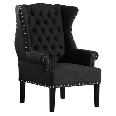 Baxton Studio Wholesale Interiors Knuckey French Country Beige Linen Nail Head Wing Back Armchair Large