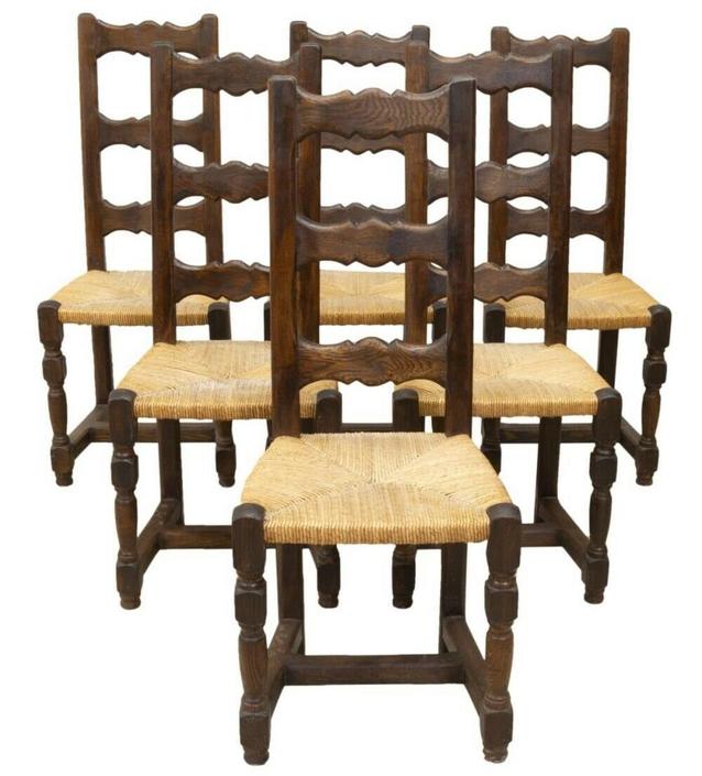 8 French Louis Xv Oak Ladder Back Kitchen Chairs Antiques