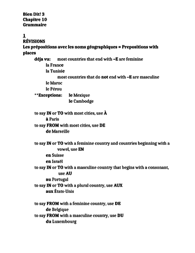 Bien Dit 3 Chapitre 10 Grammaire Study Guide