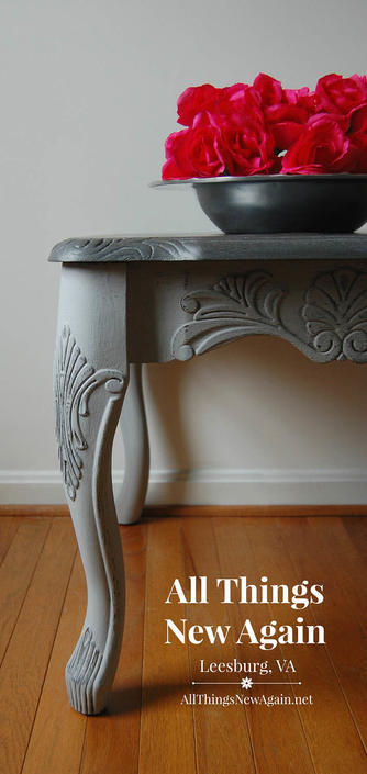 French Country Gray Side Table Gray End Table Small Table With Elegant Carving Shabby Chic Gray Side Table Vintage Gray Side Table By