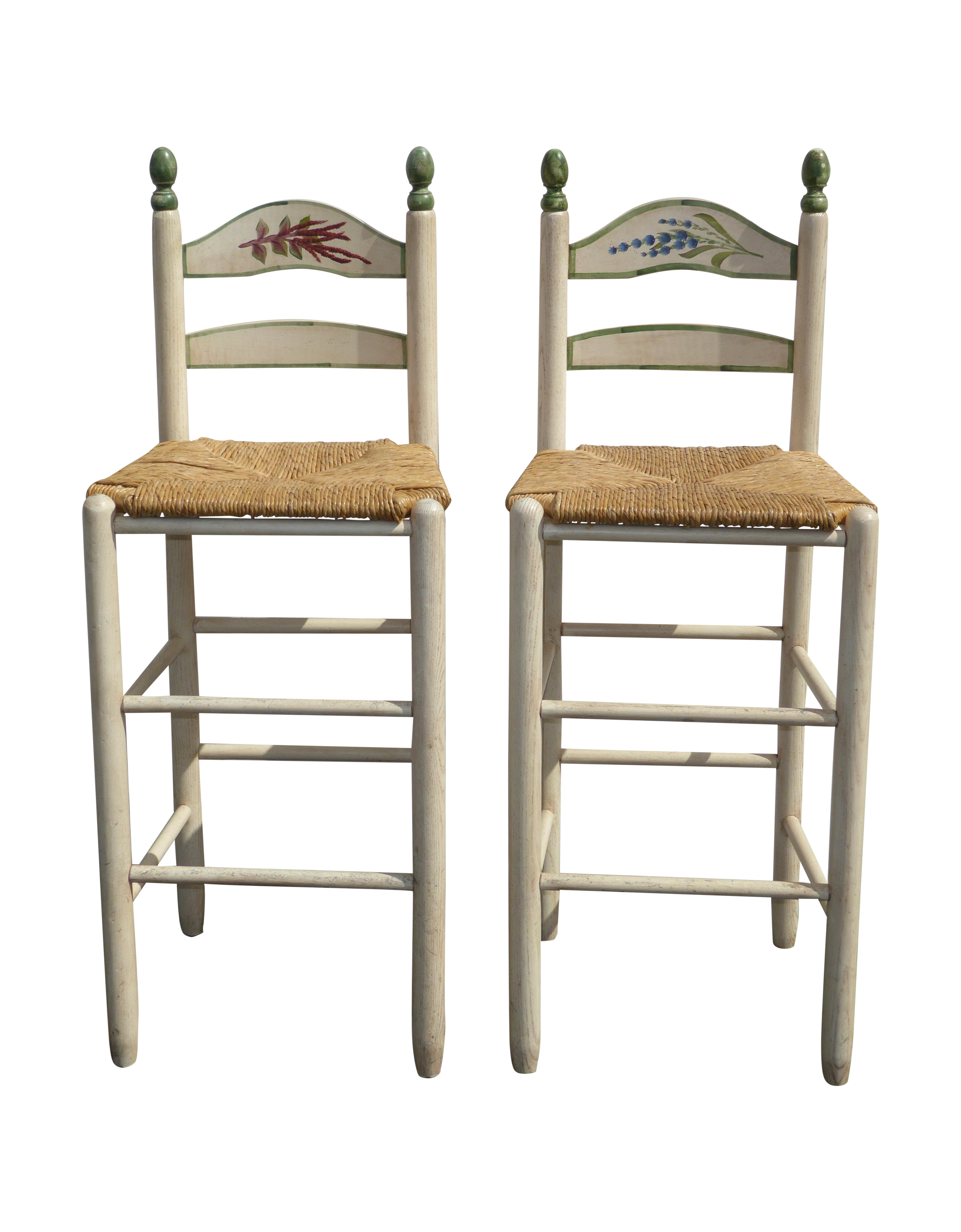 French Country White Rush Seat Bar Stools A Pair