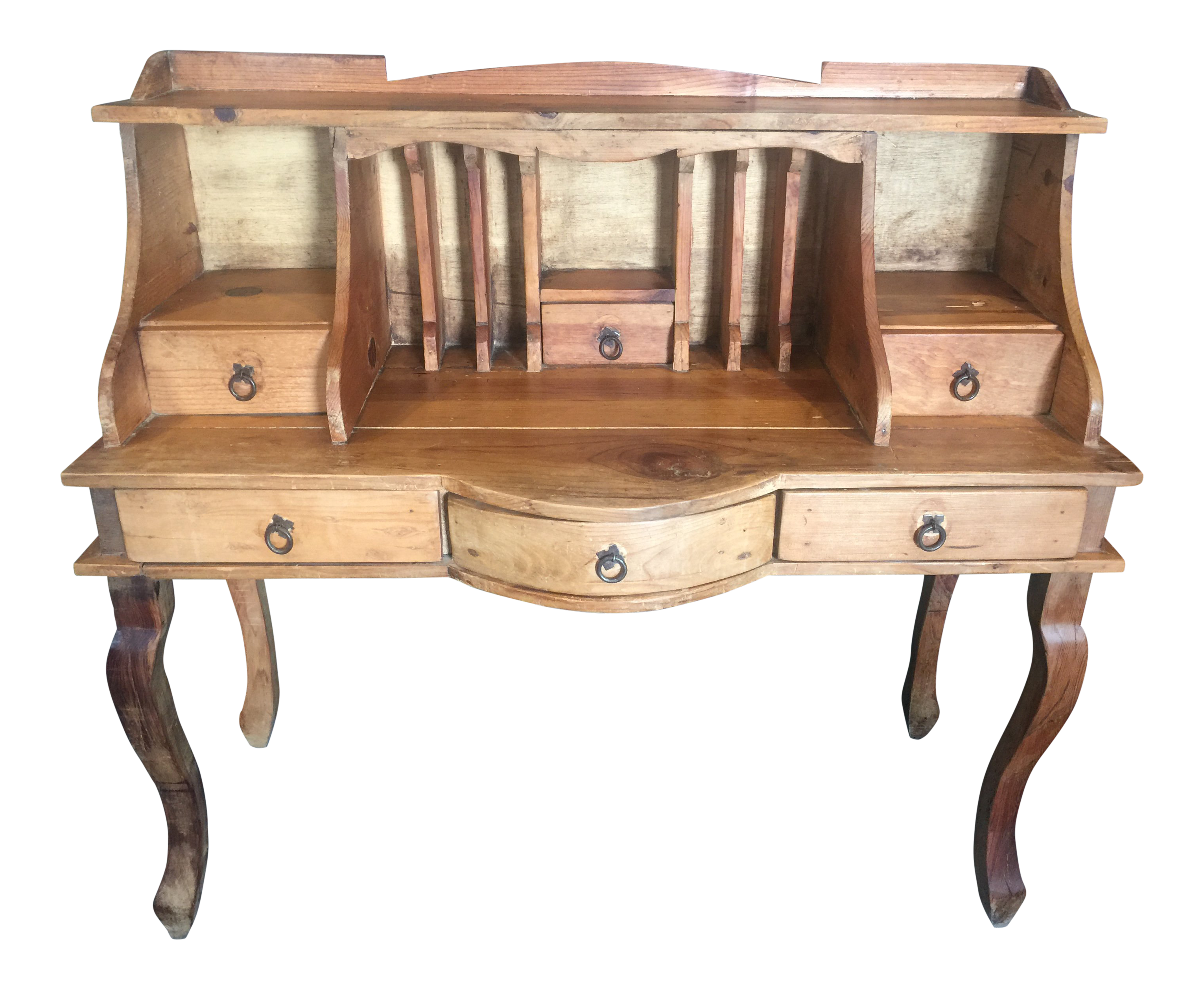1970s French Country Louie Xv Provincial Writing Desk With Hutch