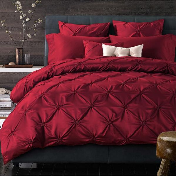 Imitated Silk Luxury Bedding Set Solid Color Handwork Pinch Pleat Bed Set King Queen Size Duvet Cover Bed Sheet Cotton French Country Bedding High End