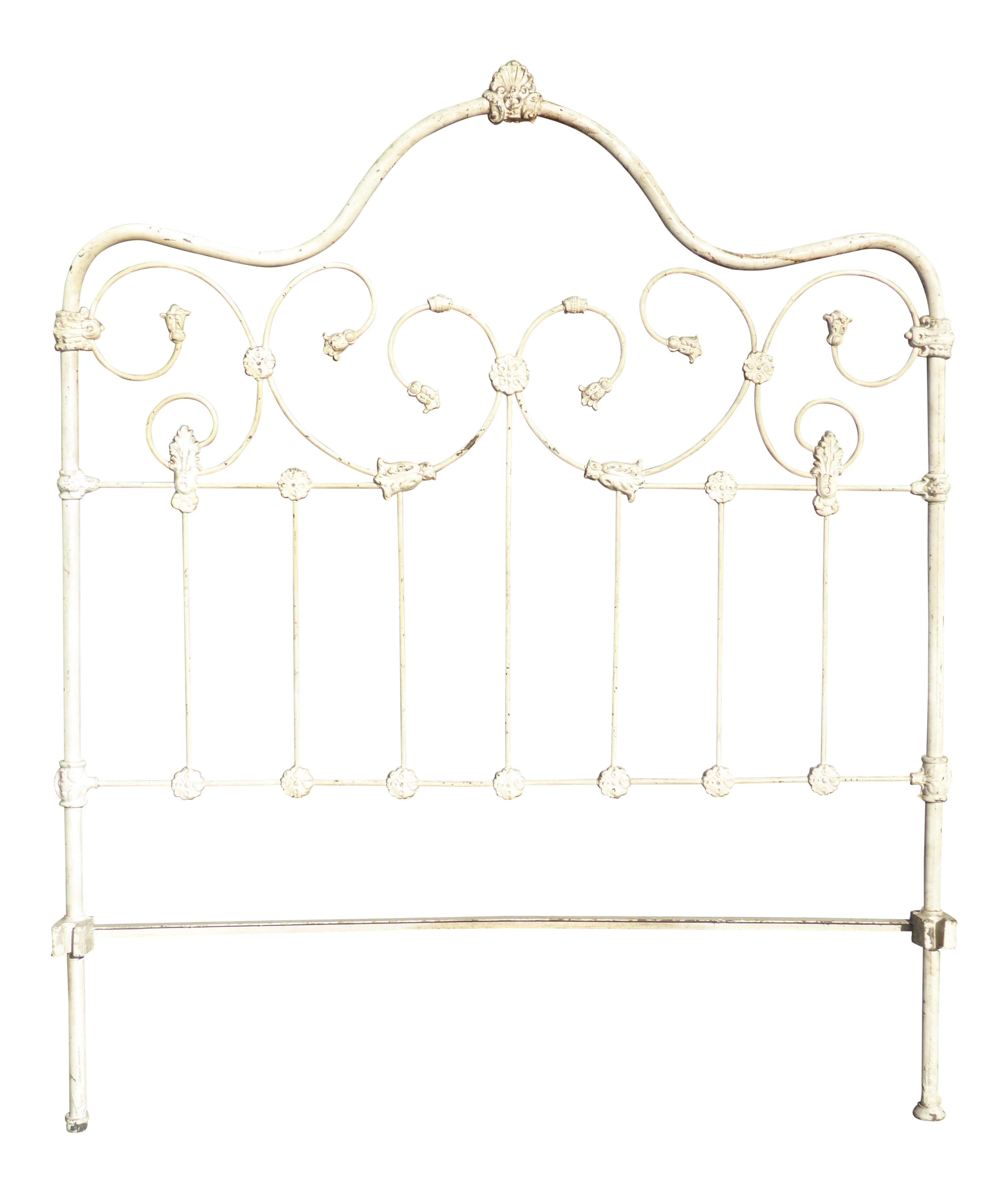 Vintage French Country Shabby Chic Off White Cast Iron Full Headboard