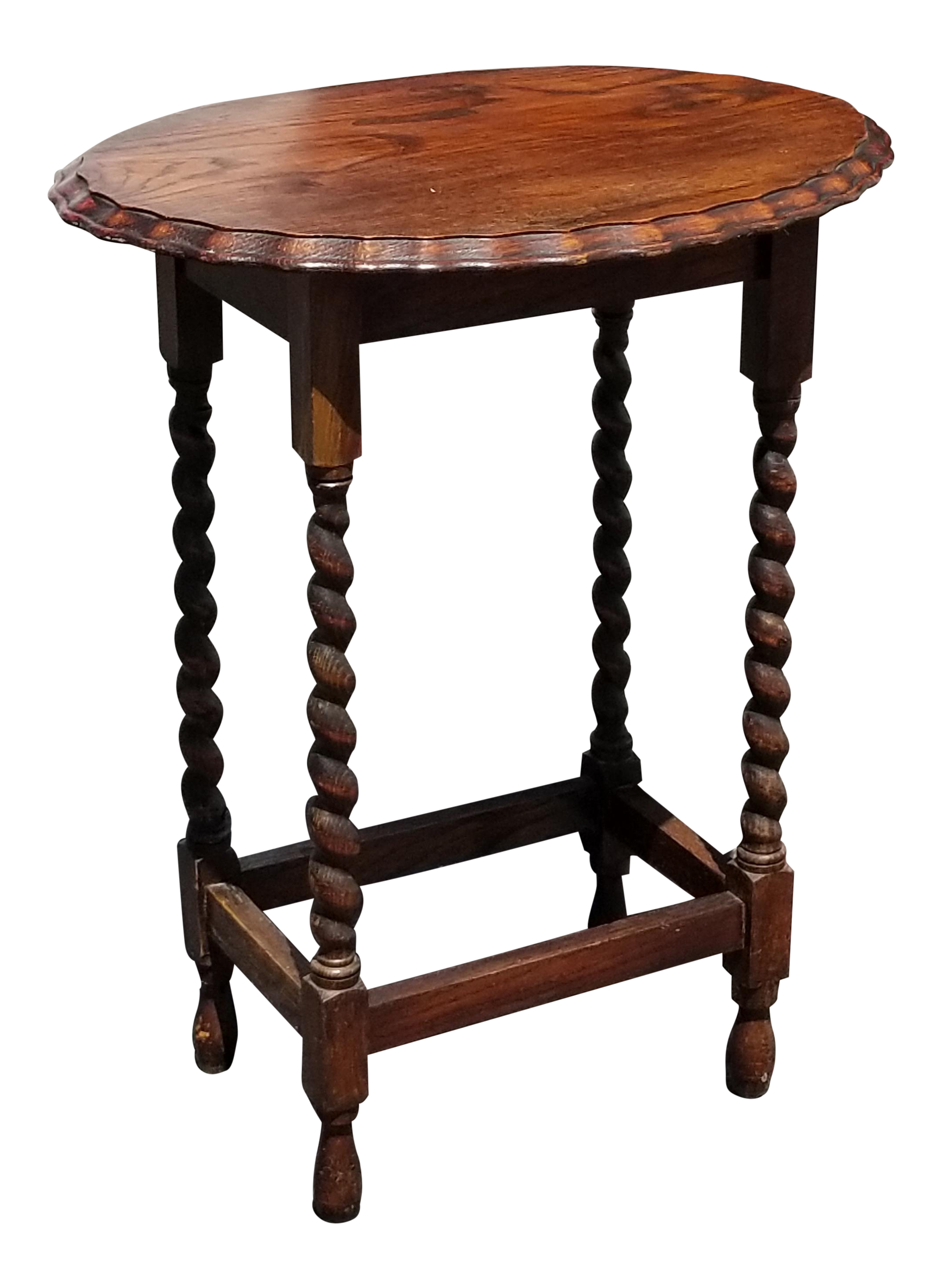 Antique French Country Oval Pie Crust Edge Top Barley Twist Side Table