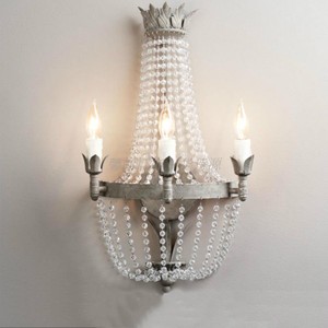 Details About French Country Crystal Wood Beads Sconce E14 Bulb Aged Finish Wall Lamp Light
